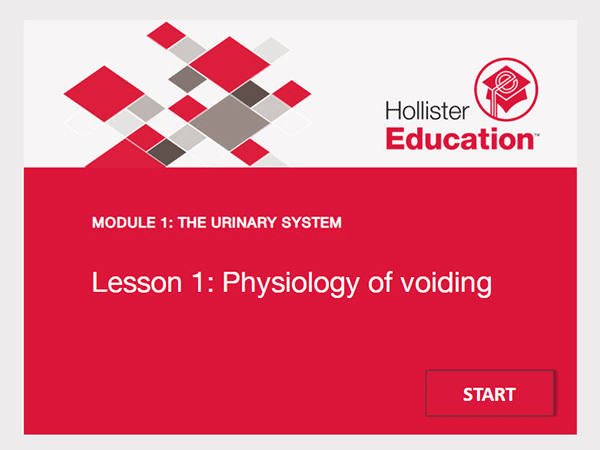 Hollister Education has developed an online course the Urinary System that offers students, junior nurses and interested people working in health care settings who have some practical nursing experience, the opportunity to learn more about this specialized area of care. There are a total of five lessons that can be viewed in any order, with ongoing activities and an assessment at the conclusion of each lesson. Topics include: Physiology of voiding, Upper urinary tract, Lower urinary tract, Urine and Nervous system and bladder control. Each lesson contains a glossary of terms and reference resources.