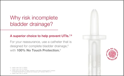 Read the summary of an additional laboratory study which showed that intermittent catheters with the sleeve helped reduce the potential for external contamination during preparation and insertion of an intermittent catheter. This reduction may help reduce the risk of bacteria entering the bladder.