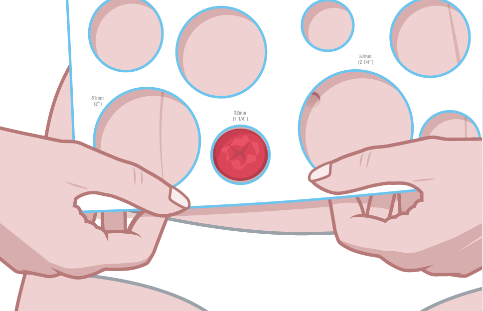 Measuring your stomaUse the Hollister round or oval stoma measuring guides to help ensure a good skin barrier fit, and help prevent peristomal skin complications.