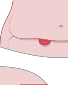 Below/Flush: A stoma that is level with or below the skin surface.